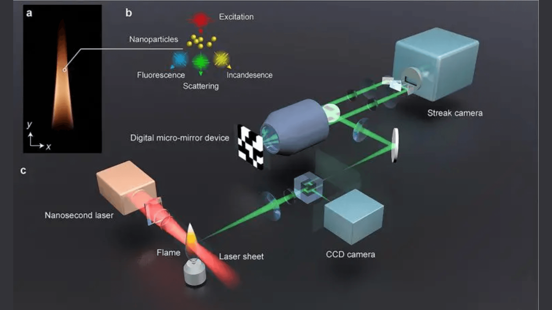Yıldızlararası uzaydaki malzemenin yüzde yetmişi hidrokarbonlardan kaynaklanan kurum parçacıklarından oluşur ve bunlar aynı zamanda elektronik ve enerji alanlarında kullanılan ilgi çekici nanomalzemelerdir. Kurum parçacıkları ve aromatik hidrokarbonlar yandıklarında nanosaniye olarak tahmin edilen bir yarılanma ömrüne sahiptir. Yanma sırasında bir daha gerçekleşmeyen çok hızlı refleksler belirleyici özelliğidir. Araştırmacılar şimdi bu yeni lazer kamerayı kullanarak yanmayı incelemek için yeterince hızlı görüntü yakalamayı başardılar.