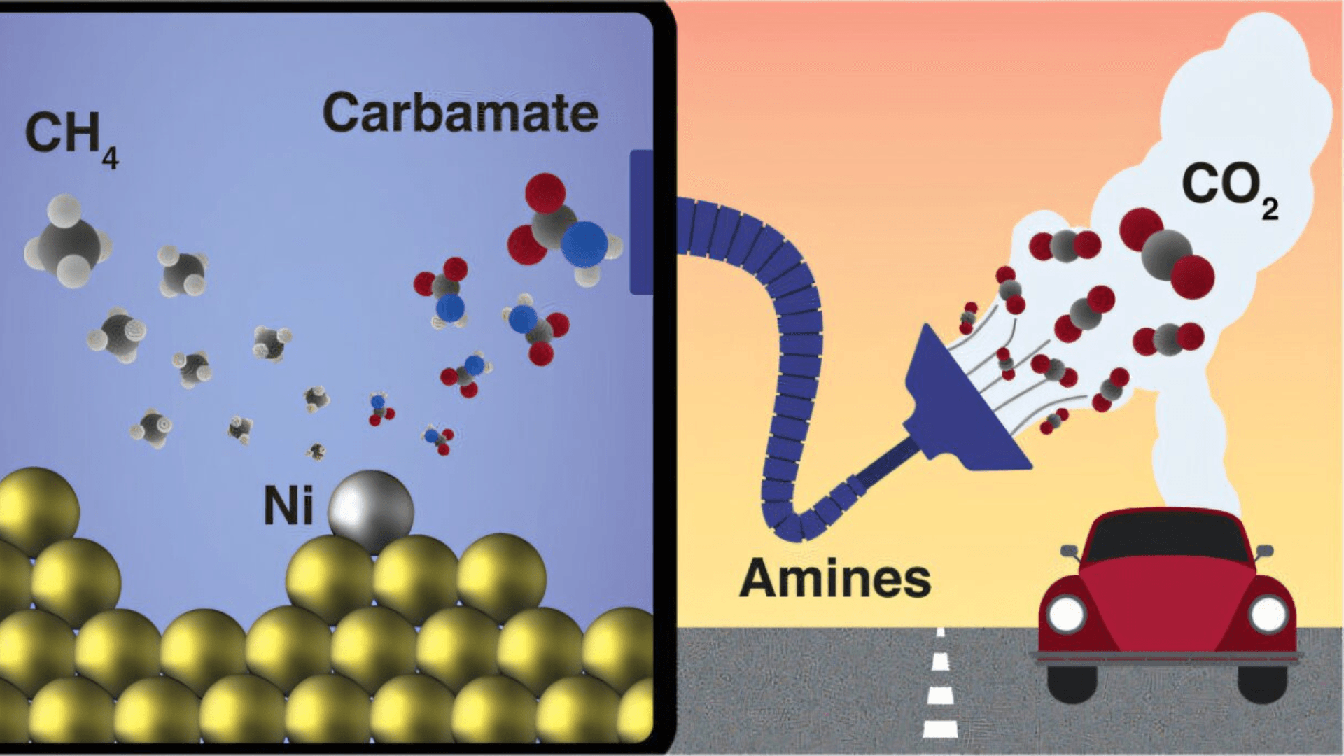 Ohio State Üniversitesi’nden kimyager Tomaz Neves-Garcia liderliğindeki araştırma ekibi, karbon dioksiti doğrudan metana dönüştürerek bu enerji sorununa çözüm getirdi. Bu işlemde, özel bir nikel bazlı katalizör kullanıldı. Ekip, nikel atomlarının elektrik yüklü bir yüzeye yerleştirilmesiyle karbamatı (yakalayıcı formdaki karbon dioksit) doğrudan metana dönüştürmeyi başardı.